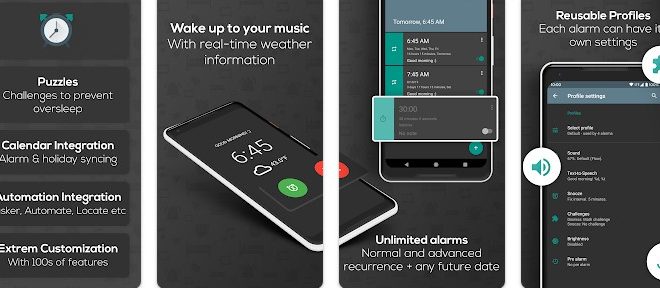 Timely Alarm Clock adalah APK alarm yang menawarkan antarmuka yang indah dan intuitif. APK ini dilengkapi dengan berbagai pilihan suara alarm, serta fitur tidur pintar yang dapat mematikan alarm otomatis saat pengguna menggenggam atau mengangkat perangkat. Selain itu, APK ini juga memiliki fitur manajemen waktu yang memungkinkan pengguna untuk mengatur alarm berdasarkan kategori kegiatan.